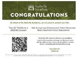 Enjoy an unforgettable evening in Music City with Nashville Symphony, a gourmet dining experience at Eddie V's Prime Seafood, and a romantic carriage ride through downtown Nashville.