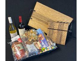Prepare to entertain with this exciting chef's bundle. You'll get one charcuterie board, one cheese slicer, two bottles of wine and this amazing gift basket from Lotsa Pasta.