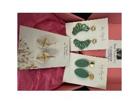 Discover the beauty of handcrafted polymer clay jewelry with this charming Bay Clay Co. collection! This trio features three distinct pairs of earrings, each showcasing unique artisan design. Includes elegant botanical leaf-textured ovals in sage green with gold disc studs, whimsical fan-shaped dangles in forest green with pearl accents, and minimalist cream circles adorned with delicate gold cross details on hoop backs. Each pair is lovingly handmade, offering lightweight comfort and one-of-a-kind style.