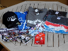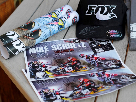 Gift bag includes: 4-signed posters, 6-T-shirts from B Tuff Jeans, HMK, UNI and Monster Mike Schultz (one signed), 1 signed FOX baseball cap and a bottle of LOCTITE.