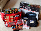 1 Charbroil Tabletop Gas Grill, 1 Parini Grill Anywhere Premium Barbeque Set with Cooler Bag, Shock Top Seasonal Beer, 4 McCormick Grill Mates Marinades, Towel, oven mitts and hot pads.