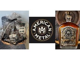 Unwind in style with this sophisticated gift set from American Metal, featuring everything you need for the perfect evening in. Enjoy a smooth bottle of whiskey and a Flathead 660 cigar, paired with a sleek decanter, cocktail shaker, two cocktail glasses, and two shot glasses. Serve in style with skull-themed marble coasters, a wood cutting board with gold utensils, and a bottle opener, all complemented by gourmet biscotti and a weathered tobacco candle. A bold, refined collection that blends craftsmanship, comfort, and character.