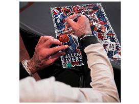 Each autograph replica is hand signed by basketball legend Allen Iverson and artist Jordan Spector. All autograph print replicas are numbered. All autographed pieces include two certified hologram stickers from Spector Sports and JSA.