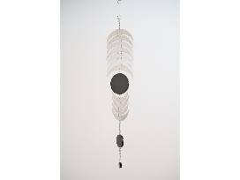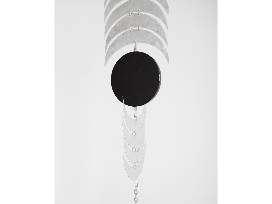 Los Angeles artist Fay Ray's Black Matrix is a jewelry-like arrangement exemplifies the artist's signature hanging sculptures which reference histories of abstraction and spiritual iconographies, and reflect the artist's experiences of birth, creativity, and life-force as a mother of three. This elegant sculpture can hang from the ceiling or against a wall, making it a dynamic addition to any contemporary art collection. MOCA Tucson presented Ray's first solo museum exhibition, PORTALS, in 2024. Ray's work has shown at the Gagosian Gallery, the Palm Springs Art Museum, El Museo del Barrio, among others. Her work is held in the permanent collection of the Palm Springs Museum of Art and the Los Angeles County Museum of Art.