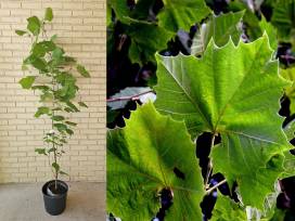 Potted sycamore sapling approximately 6' tall. This young tree is ready to be planted and thrive in your yard! Sycamores are a large, fast-growing tree, reaching 75-100 feet tall when mature. Their signature feature is their bark: the light brown outer layer peels in irregular shapes to reveal striking white inner bark.