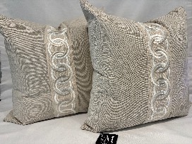 A pair of lovely neutral custom made decotrative throw pillows. Would be perfect for any spot in your home!