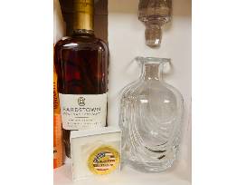 Kentucky Bourbon Festival VIP Box: Box includes a bottle of Bardstown Bourbon Company Origin Series, an etched glass decanter, a Bourbon Festival gold medallion, and two etched Decanter Club glencairn glasses