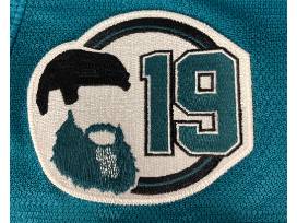 #19 Joe Thornton Retirement Night San Jose Sharks Jersey Created for #5 Matt Benning to wear on Joe Thornton No. 19 Retirement Night, November 23, 2024 at SAP Center