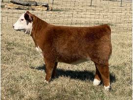 When you are born with this pedigree, the expectations are HIGH! 774M lives up to those expectations set by her full sibs, KLD/CG Breath taker the Breeds Triple Crown winning female for the Schaa family, KLD Ella Louise of Amelia Cragen turned heads for years as she collected many Banners at the Majors and KLD Chosen One, the super sire for Thorsons that has left his mark on the breed! Just like her sibs she is incredible, deep sound functional and just hard to poke a hole in! That's how we like it! Owning this breed leader is like owning a piece of Mini Hereford History! You'll be proud to show her the next 2 years and you'll be more proud when she leads your program the next decade! Polled 774M was 36.25 inches tall on 3/15/25