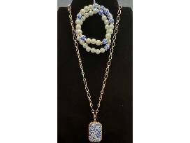 Gold & China Blue Pendant and Bracelet Set