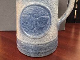 0Antique Blue & White Stoneware Butterfly Crock Pitcher