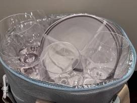 Picnic Basket - 4 Acrylic wine glasses, 4 dinner plates, 4 bowls and Cooler