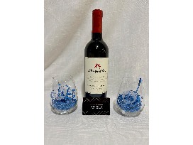 plus a bottle of red wine and Two Sterling Cut Glass NDA etched glasses