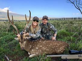 High Adventure Company jointly manages guided hunting operations on the Hawaiian island, Lanai, through a partnership with the Pineapple Brothers, Lanai is home to one of the highest densities of free-range Axis Deer in the world. Hunters will sport and stalk either in a large, flat plain known locally as "The Serengeti," or in the steep mountainous region that is heavily forested along the shores. Alternatively, for long range shooters, hunters can opt to set up at