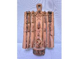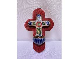 Wooden and Mexican Pottery Cross with a Dove and Holy Water Font