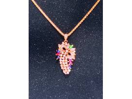 Ladies 18 Karat Yellow Gold Pendant with 18" Wheat Chain, Includes 42 Brilliant Cubic Zirconia, Four 5pt Blue Marquise Stones, Two 5pt Red Marquise Stones and One 5pt Green Marquis Stone