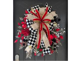 30" Whimsical Red, Black, Gold, and White Christmas Wreath