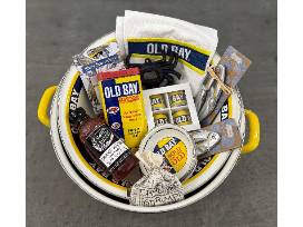 Crab boil pot, serving platter, bowls, spices and seasonings, crab crackers, etc