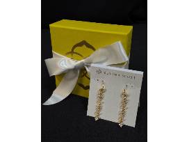 These earrings are made from 14k Yellow Gold Over Brass and feature White Crystal. This combination not only adds elegance but also ensures durability and a touch of glamour. These earrings have the perfect amount of swing to them. They will add a touch of glamour to any outfit!