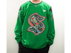 Specialty Kraken Jersey designed by Kel Lauren in honor of Green Night on April 12, 2025. Crested with player's name & number, signed by #95 Andre Burakovsky, size 54.