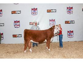 A flashy, bold, and powerful female with big time potential. Country Time derives from the great producing 215F cow that has placed numerous females at the top of our sales the last few years. In the picture pen, we marveled over her stoutness of bone, body, and hip, yet she blends it with the cow look that will put her towards to top!