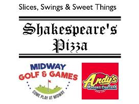 Donated By MIdway Golf and Games, Shakespeares Pizza and Andys