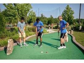 Head to Midway Golf & Games with five gift cards, each good for a round of mini golf, a go-kart ride, and your choice of three batting cage tokens or a bucket of driving range balls-perfect for family fun or a group outing.