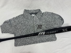 Crafted from premium maple, the Marucci bat mirrors the specifications used by pros across the Big Leagues. Paired with a quarter-zip, size Medium, made from lightweight stretch fabric. Bat dimensions- 34" long.