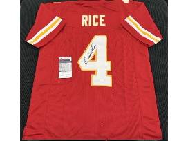 Add a rising star to your collection with this autographed Kansas City Chiefs jersey signed by wide receiver Rashee Rice, complete with JSA Certificate of Authenticity. A dynamic playmaker and key part of the Chiefs' explosive offense, Rice is quickly becoming a fan favorite. This jersey is a perfect addition for Chiefs fans and collectors looking to own a piece of the team's exciting future.
