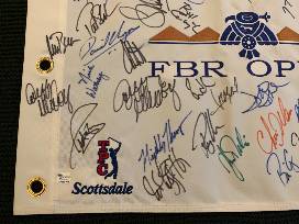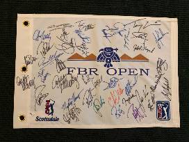 1Own a rare piece of golf history with this FBR Open TPC Scottsdale Field Flag from 2020, featuring 39 autographs from notable PGA Tour professionals.
