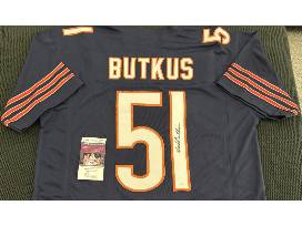 Celebrate one of the greatest linebackers in NFL history with this Dick Butkus signed Chicago Bears jersey, Beckett Authenticated and complete with a Certificate of Authenticity (COA). Known for his fierce play and iconic legacy, this autographed jersey is a prized collectible for any Bears fan or football enthusiast.