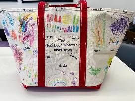 Every Rainbow Roomer from the 2024-2025 class decorated their own special section of this priceless, one-of-a-kind tote bag.