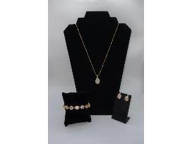 Matching Jewelry Set: A radiant necklace, bracelet, and earrings featuring shimmering crystals in a delicate floral-inspired design, set in gold for a timeless touch of luxury.