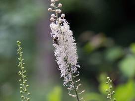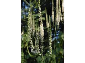 Black Cohosh is a striking woodland native that creates a strong vertical statement in a shade or border garden. The tall flower spires stand out in front of a darker background and provide late summer blooms when other woodland flowers have faded. Does well in shade. Black Cohosh has an odor that repels some insects. In the past, the root was used to treat various conditions, ranging from snakebite and lung inflammations to the pains of childbirth. Black Cohosh is a host plant for the Spring Azure, Holly Blue, and Appalachian Azure butterflies.