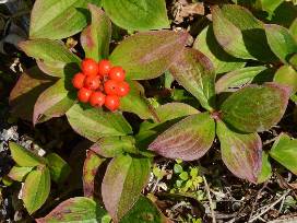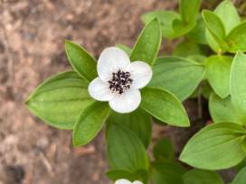 Bunchberry, also known as Creeping Dogwood, is an excellent shady ground cover with unique leaves, bright white flowers, and berries. A hardy, adaptive, and low-maintenance plant, bunchberry thrives in a variety of soil and likes shade. Bunchberry's edible fruit, high in pectin, a naturally occurring thickener, can be used to help jams, jellies, and fruit preserves set. This is the smallest member of the Dogwood family.