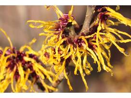 This shrub usually reaches 10' to 15', is easy to grow, and has fragrant, yellow flowers in the fall when its leaves turn a brilliant gold. Witch hazel was a major medicinal plant for Native Americans and is still commercially used today. Witch hazel oil has a long history in medicines, eye-washes, aftershave lotions, and salves for soothing insect bites, burns, and poison ivy rashes. Native Americans and early settlers relied on their forked branches as a way to find underground sources of water. Witch hazel is a popular food source for insects and butterflies and is a nesting site for several bird species. Turkey, grouse, and squirrel feed on its seeds.