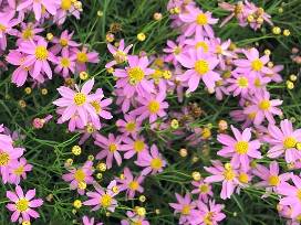 Rose Coreopsis, or Pink Tickseed, has dense, mound-like foliage, which is covered with an abundance of small pink flowers with yellow centers from June to September. It likes full sun and will grow 1' to 2' high. This plant grows easily and forms attractive patches. Rose Coreopsis attracts bees, butterflies, and birds.