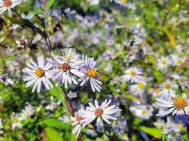 Crooked Stem Aster features showy mounds of delicate lavender-blue flowers from August to October. While the plant has a rounded shape, its multiple branching stems tend to zig zag, giving the plant its name. Crooked Stem Aster will grow 2' to 3' in full sun to partial shade. Its fragrant flowers attract bees and butterflies and provide vibrant fall color to the garden. Crooked Stem Aster is a host plant for the Pearl Crescent butterfly and the Wavy-Lined Emerald moth. Native Americans made a tea from its roots to treat fevers, colds, and kidney ailments.