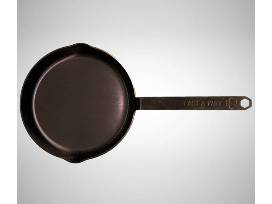 A premium Cast-A-Way Iron Skillet with a rustic leather strap, built for searing, sizzling, and serving up skillet perfection.