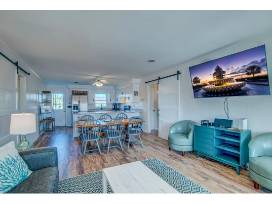 Recently updated with an open-concept layout, the home features a bright and airy kitchen, dining, and living area designed for togetherness. You'll also love the enclosed sun porch-complete with extra seating, a dining space, game table, cornhole, and giant Jenga-ideal for family fun or relaxing after a day at the beach.