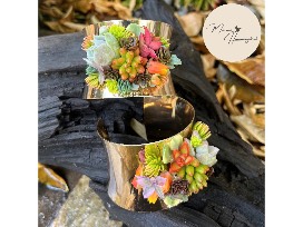 Own a piece of living art that is not only beautiful but also sustainable. Each piece of jewelry is hand-picked by Mamma Hummingbird and features a mini succulent arrangement that you can wear for up to two weeks (or sometimes longer). Afterward, you can plant the succulents in a pot or your garden, creating a lasting memory. It's a unique way to enjoy both a piece of jewelry and a new addition to your garden!