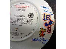 The Brett/Bobby Hull plate has a remarque on the back from the artist, Michael Taylor.