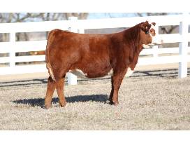 This is another on of the sisters in the sale, Her and her sister are both dark red, and both carry pigment on their heads. This female really moves out and if fluid in her movements. She has the look and performance to do well in and outside the ring. This female also goes back to the outstanding cow K&B Bella 219z This female has a great disposition and has had kids interacting with her.