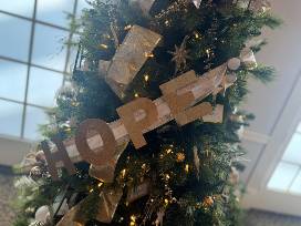 A tree that feels alive with warmth and purpose, inviting viewers to pause, reflect, and feel uplifted. It's a beacon of optimism, blending the cozy traditions of Christmas with a powerful message of resilience and unity, encouraging all who see it to carry hope forward like a flame in the heart.