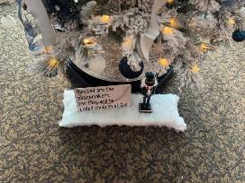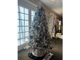 This Christmas tree honors the men and women in law enforcement. The theme "Blessed Are the Peacemakers" (Matthew 5:9) reminds us of the noble calling to protect and bring peace to our communities. The tree is adorned in blue, silver, and white - colors symbolizing peace, strength, and hope. Star ornaments represent fallen officers who continue to watch over us. Soft white lights shine on the branches and the tree topper is a shining star, symbolizing faith, guidance, and the steadfast spirit of every peacemaker who serves.