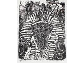 If you love Black art this item is for you. Be the proud owner of an original linocut print, "Pharoah," from Dr. Margaret Taylor Gross Burroughs (African American; 1917-2010), founder of the DuSable Museum, the first museum of African American history and culture, located in Chicago. This original print of "Pharoah" (16.75" x 14.75") was acquired from the home of Margaret and Charles Burroughs during the last acquisition and evacuation of remaining items upon the sale of the home to a private buyer. Upon the generosity of the Burroughs family who donated a large archive of materials to the South Side Community Art Center, the family extended an offering of remaining materials not gifted to the Center to the archives team charged with completing the acquisition and archival work. As the lead archivist, the family gifted items primarily related to travels, clothing, art, and music instruments to archivist Skyla S. Hearn, which influenced Hearn's ability to carry on the legacy of Dr. Burroughs. Burroughs sought to share and gift art, educate, empower and uplift people with the knowledge of her great contributions. This original print is not signed as Dr. Burroughs would often sign her works in "real time," which was an intentional act to oppose Western art canon practices. She would often give art away to people she encountered in her daily activities while riding public transportation, eating at some of her favorite restaurants, or visiting local schools. She believed art should be owned and appreciated "up close" by everyday people. Her works can be found abroad and nationally in the permanent collections of Howard University, Alabama State Normal School, Atlanta University, DuSable Museum, Johnson Publishing Company, the South Side Community Art Center, Oakland Museum, private collections, and so on.
