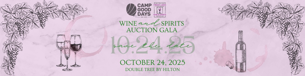 The 25th Annual Wine & Spirits Auction Gala, combined with the Finger Lakes International Wine & Spirits Competition (FLIWC), has become one of the largest fundraisers for Camp Good Days. Each year, the auction gala raises vital funds to provide summer camping experiences and year-round services for children and families impacted by cancer or sickle cell anemia. This year, we are excited to celebrate the 25th year on Friday, October 24th, at the DoubleTree in Henrietta!
