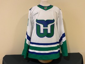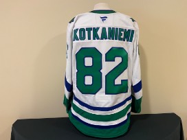 Jesperi Kotkaniemi #82 autographed game worn Whalers night jersey. Worn on 2/27/25 vs Buffalo. Size 56.