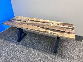 Reclaimed, rustic live edge bench measuring 48" L x 16.5 W x 18.5 H, hand-crafted by Phil Rogers