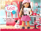 Meet Grace, 2015 American Girl of the Year! The 18th Grace doll has sparkling blue eyes that open and close, a sprinkling of freckles on her nose, and long dark-brown hair with side-swept bangs and a tiny accent braid. She comes with the Grace paperback book, her Paris welcome outfit, and Bistro Set. Donated by Karen Joyce.